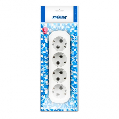 Колодка розеточная 4 гнезда с заземлением, 16А 220В, белая, Smartbuy (SBE-16-4-00-Z)