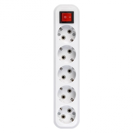Колодка с 5 розетками с заземлением и встроенным выключателем.