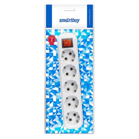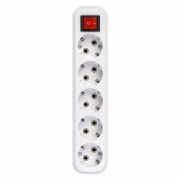 Колодка розеточная 5 гнезд с выключателем и заземлением, 16А 220В, белая, Smartbuy (SBE-16-5-00-ZS)