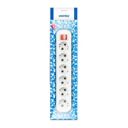 Колодка розеточная 6 гнезд с выключателем и заземлением, 16А 220В, белая, Smartbuy (SBE-16-6-00-ZS)