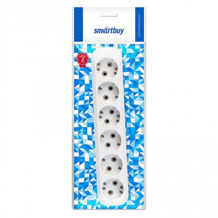 Колодка розеточная 6 гнезд с заземлением, 16А 220В, белая, Smartbuy (SBE-16-6-00-Z)