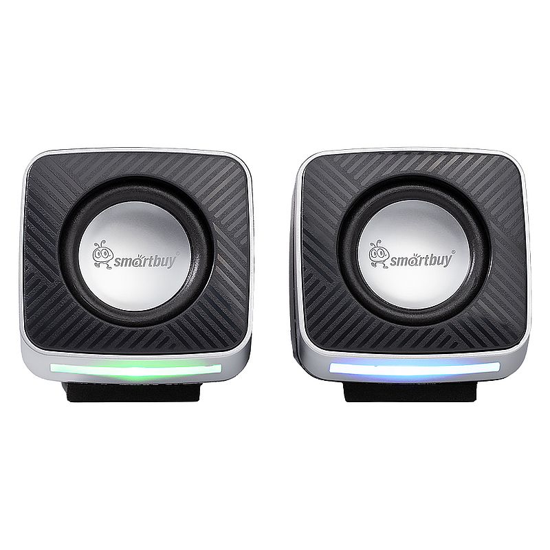 SmartBuy MINI PRO - стильные компьютерные колонки с RGB-подсветкой. Они идеально подойдут для игр, кино, прослушивания аудиокниг и музыки. Выходная мощность 6 Вт и чистый звук делают эти колонки оптимальным решением при выборе настольной акустики. Современный дизайн позволяет разместить их в любом интерьере. Регулятор громкости удобно расположены на кабеле. Питание колонок осуществляется от USB порта любого компьютера. Подключаются к источнику звука с помощью стандартного 3.5 мм штекера. Технические характеристики