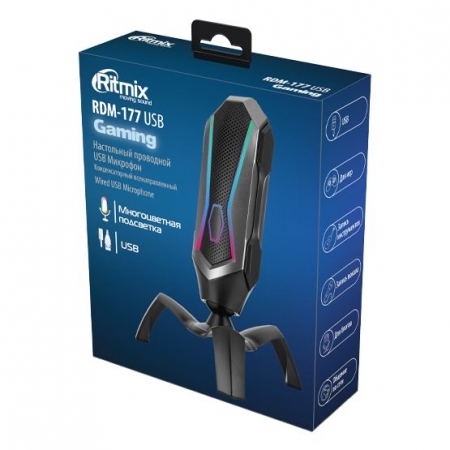 Ritmix RDM-177 USB Gaming - конденсаторный настольный USB микрофон игровой серии с RGB-подсветкой.