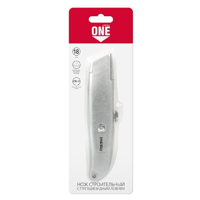 Нож строительный 18 мм, алюминиевый корпус, трапециевидное лезвие, Smartbuy (SBT-KNT-18P1)