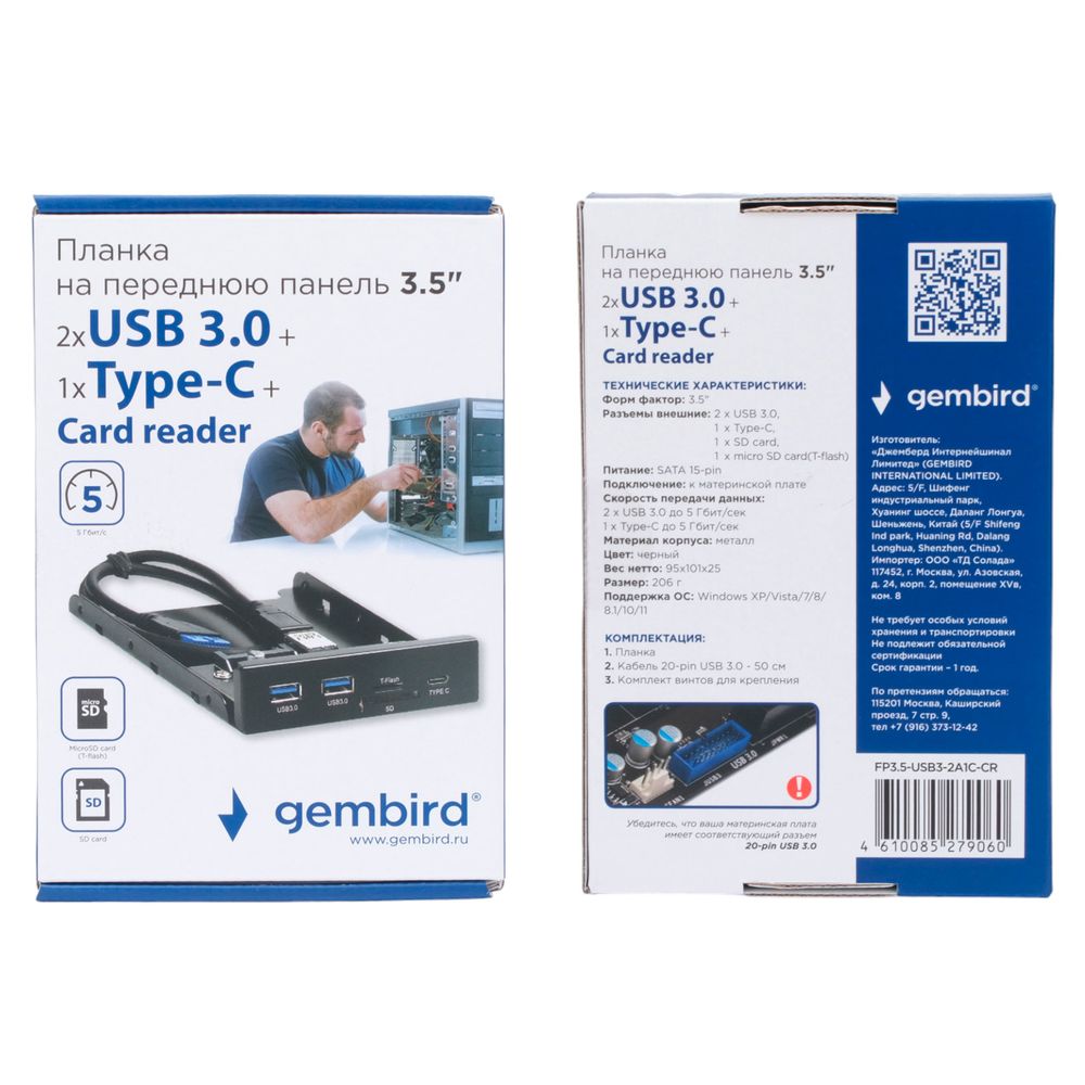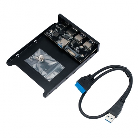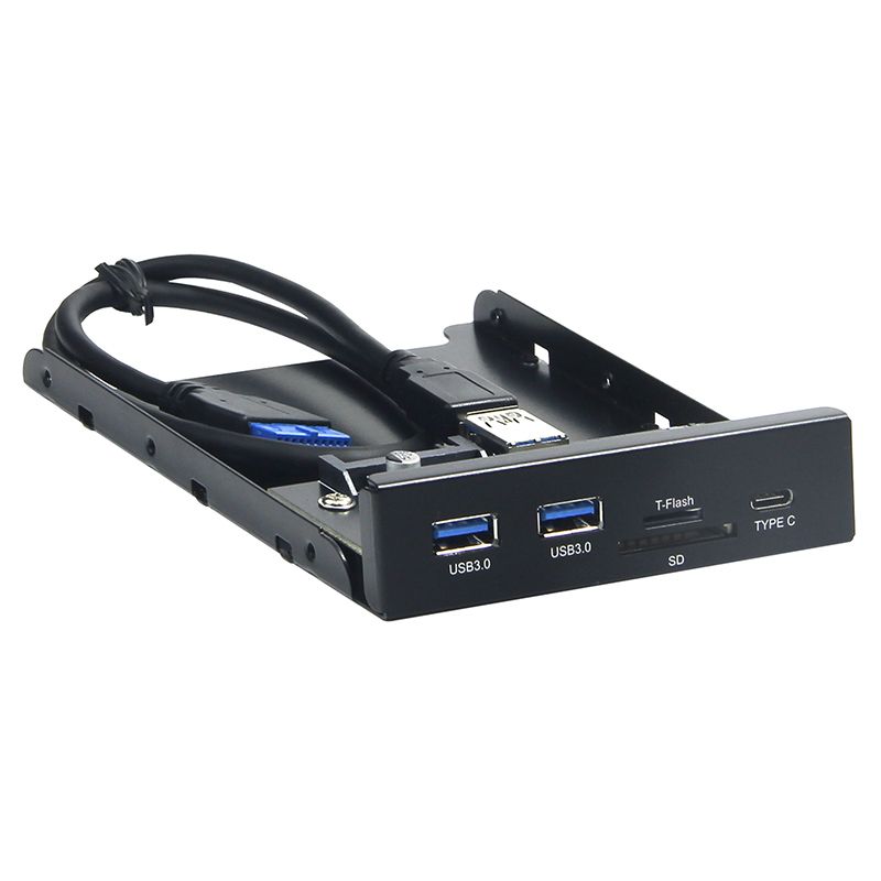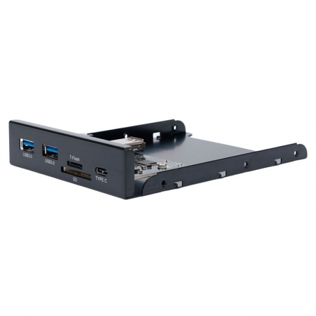 Планка USB 3.0 на переднюю панель 3.5". Фронтальная панель оснащена двумя высокоскоростными портами USB A 3.0, портом Type C и слотами для карт памяти SD и microSD. Корпус изделия выполнен из металла.