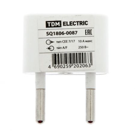 Переходник 220В с вилки EU/US в RU, 10А, белый, TDM (SQ1806-0087)