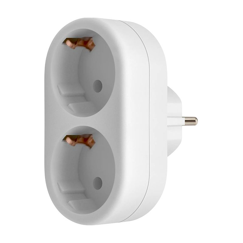 Переходник двойник предназначен для одновременного подключения двух электроприборов к одной сетевой розетке. Переходник имеет плоскую форму корпуса и оснащен заземляющими контактами. Может применяться с приборами высокой мощности, такими как электронагреватели, электрочайники, микроволновные печи с током потребления до 16A. Технические характеристики