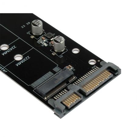Адаптер позволяет установить SSD M.2 SATA в разъём SATA III (7+15Pin). Устройство совместимо с типоразмером накопителей 2230/2242/2260/2280 c ключом B key и B+M key. Может использоваться как загрузочное устройство с ОС. Поддерживает ОС: Windows/Mac OS. Адаптер не совместим с SSD M.2 PCIe NVMe. Технические характеристики