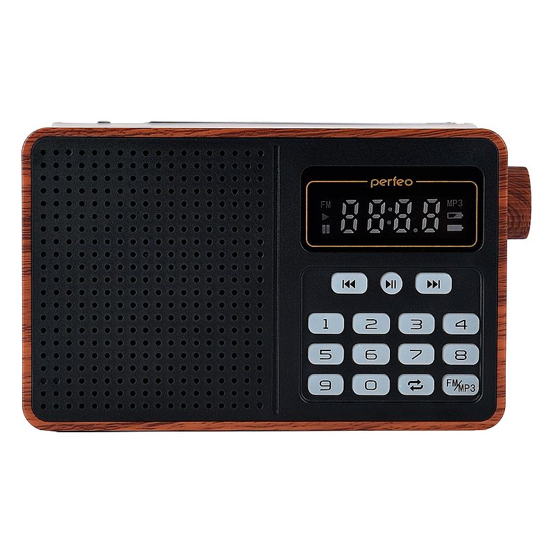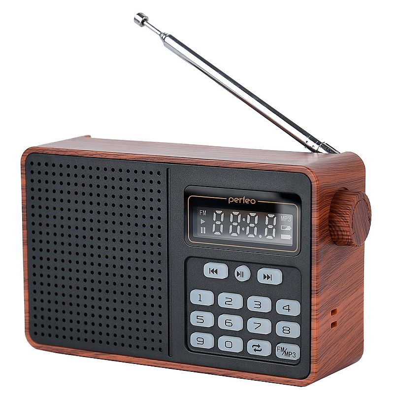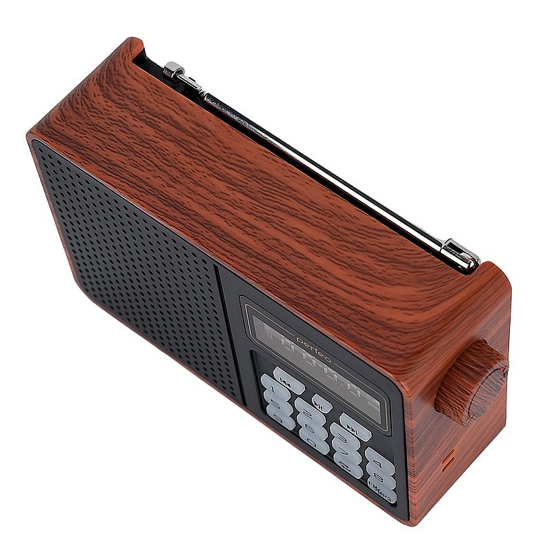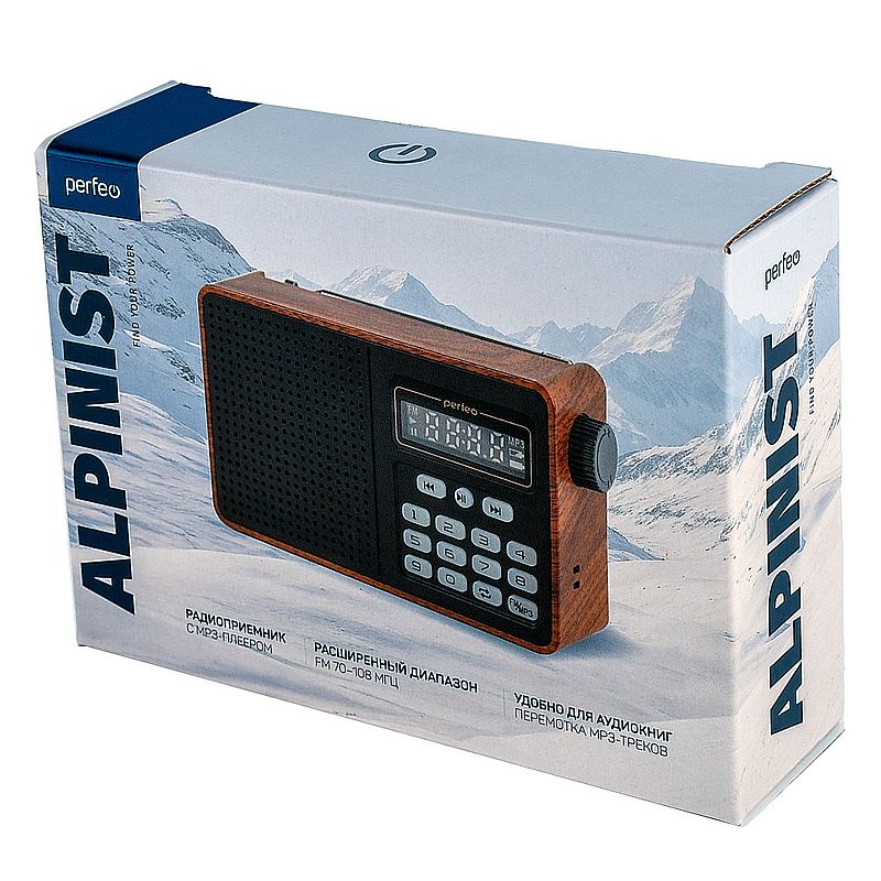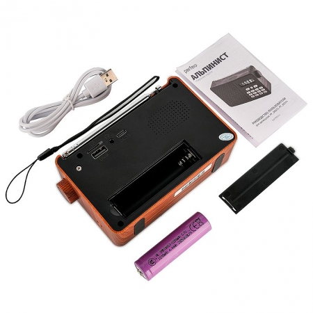 Perfeo "Alpinist" - портативный радиоприёмник с расширенным диапазоном FM (70-108 МГц) и встроенным MP3 плеером. Радиоприемник в классическом корпусе имеет стильный внешний вид, удобное колесико-регулятор громкости и кнопки управления. Также в нем предусмотрен выход для наушников 3.5 мм. Поворотная телескопическая антенна принимает сигнал в 2-х самых популярных диапазонах (УКВ и FM), есть возможность выборочного запоминания до 60 станций. Встроенный MP3-плеер воспроизводит MP3-файлы с карты памяти microSD или USB-накопителя. За насыщенное звучание приемника и создание эффекта глубины звуковой сцены отвечает 50 мм динамик (RMS 3 Вт) и пассивный сабвуфер Bass Booster. Автономная работа осуществляется от сменного аккумулятора 18650 (1200 мАч), зарядка от USB-порта (кабель USB Type-C - USB в комплекте). Технические характеристики