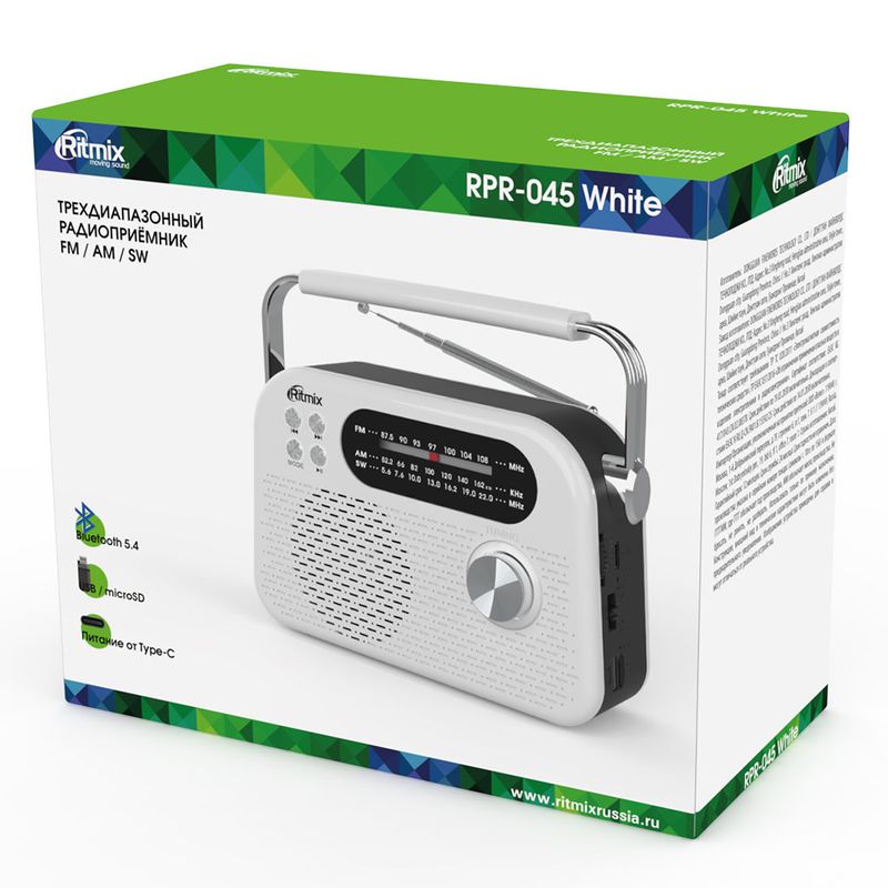 Радиоприемник Ritmix RPR-045 White, FM/AM/SW, Bluetooth, MP3
