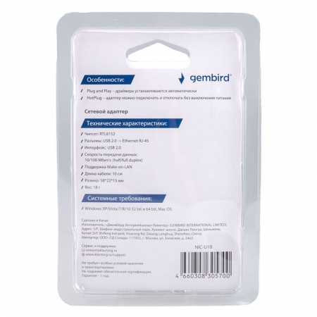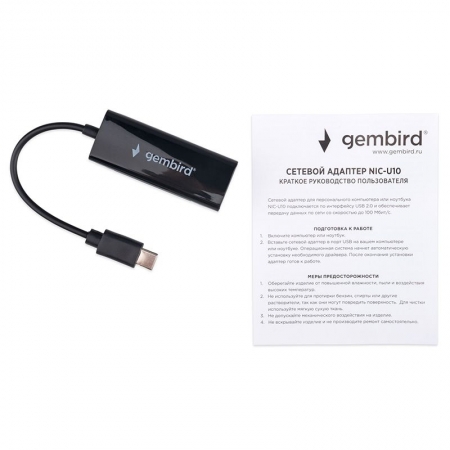 Внешний сетевой адаптер Gembird NIC-U10 для ПК, планшета или ноутбука. Устройство подключается по интерфейсу USB-С и обеспечивает передачу данных со скоростью до 100 Мбит/сек. Для работы устройства не требуется дополнительное питание и установка драйвера.