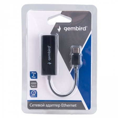 Сетевая карта USB Type C - RJ45 10/100 Мбит/с, RTL8152, Gembird (NIC-U10)