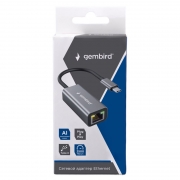 Сетевая карта USB Type C - RJ45 2.5 Гбит/с, RTL8156B, алюминий, Gembird (NIC-U12)