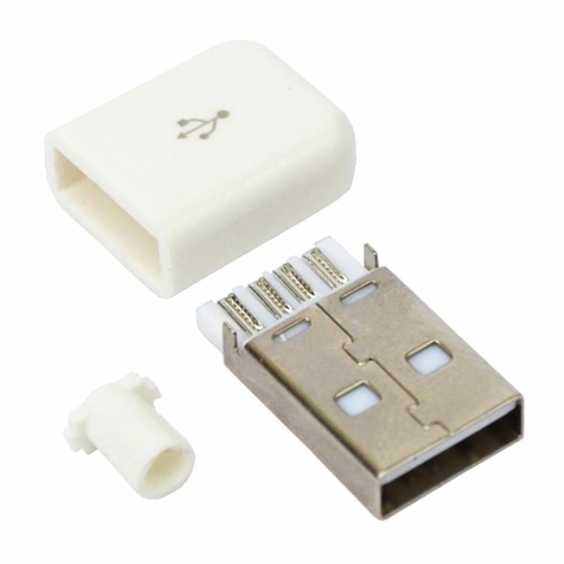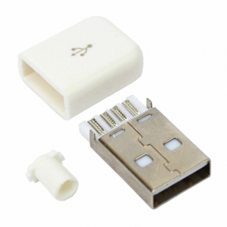 Штекер USB 2.0 Type A, под пайку на кабель, белый, Premier (1-800)