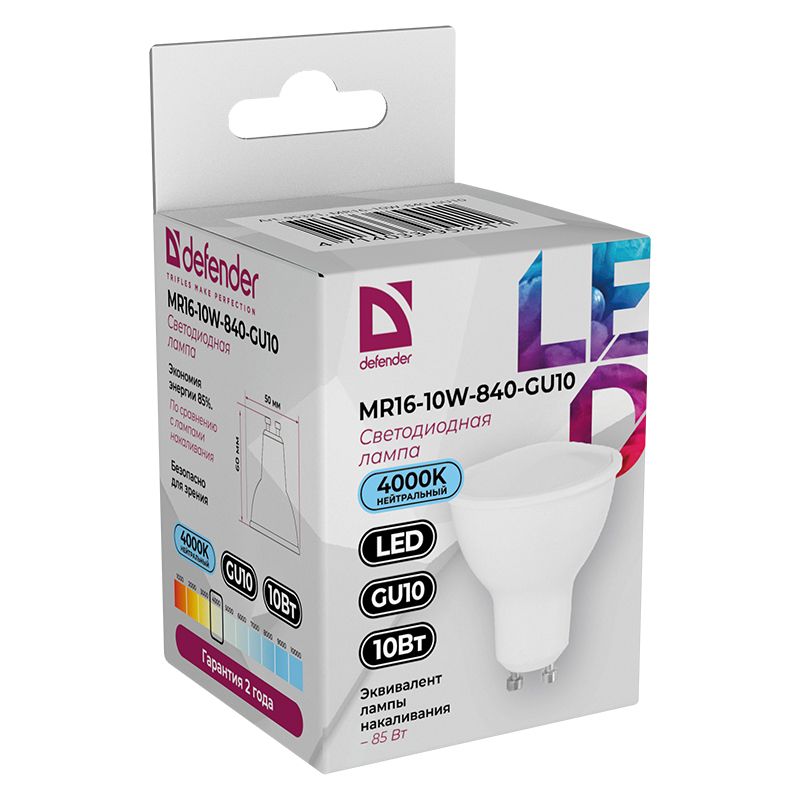 Лампочка Defender MR16 софит 10 Вт с цоколем Gu10 применяется в сети 230В