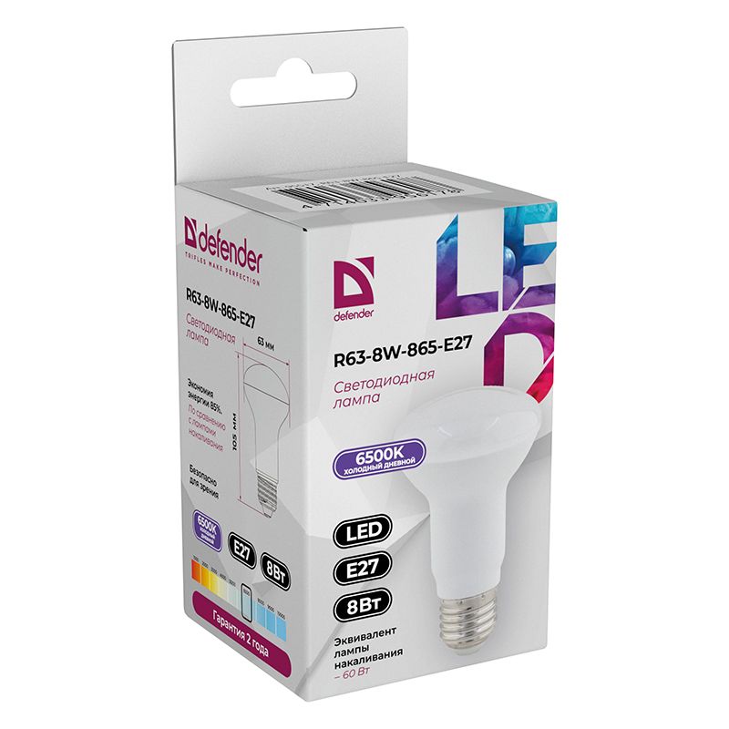 Лампочка Defender R63 рефлектор 8Вт предназначена для использования в осветительных приборах наружного и внутреннего освещения. Является современным, качественным и доступным источником света. Позволяет экономить до 90% электроэнергии по сравнению с лампой накаливания с аналогичным световым потоком. Светит холодным белым светом. Такое освещение бодрит, повышает работоспособность, создает комфортное и безопасное для глаз освещение.