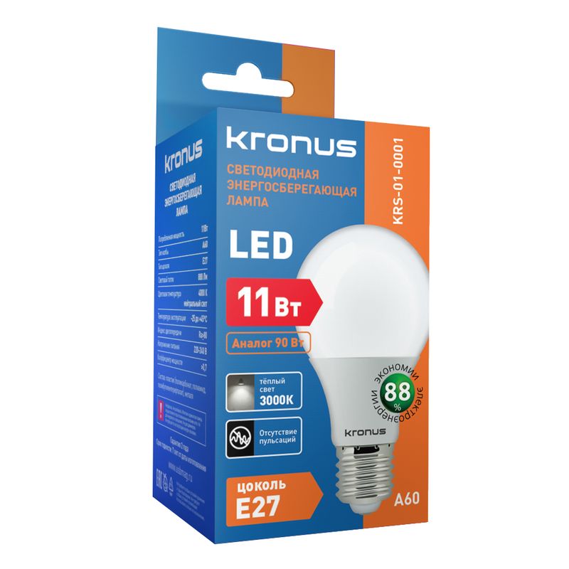 Kronus A60 - энергосберегающая лампа общего освещения, подходит для