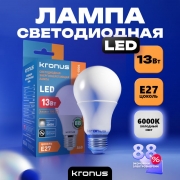 Производитель: Kronus Наименование: Энергосберегающая светодиодная лампа Эквивалент накаливания: 100 Вт Потребляемая мощность: 13 Вт Источник света: LED Коэффициент цветопередачи: Ra>80 Цветность: 6000 К (холодный белый свет) Тип колбы: А60 Цоколь: Е27 Рабочая температура: -25° до +45°С Рабочее напряжение: 220 - 240В Цвет колбы: Белый/матовый