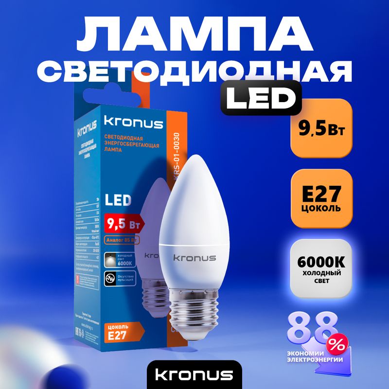 Kronus С37 - энергосберегающая светодиодная лампа общего или декоративного освещения, подходит для замены стандартных ламп накаливания и галогенных. Благодаря своей экономичности, длительному сроку службы и экологичности она выгодно отличаются от обычной лампы накаливания. Лампа С37 повторяет форму и размеры стандартных ламп типа «свеча» и идеально подходит к любому светильнику, в котором используются данные типы ламп. Колба лампы имеет матовую поверхность и оснащена цоколем E27. Хорошая цветопередача и отсутствие мерцания обеспечивают меньшую утомляемость глаз. В лампе применяется высокоэффективный драйвер с ресурсом работы до 30 000 часов. Не содержит ртути и экологически безопасна.