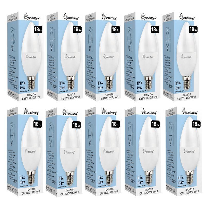 Светодиодная (LED) лампа Smartbuy C37 18W/4000/E14, 10 шт (SBL-C37-18-40K-E14)