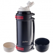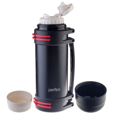 Термос для напитков с к/п и ситечком, чашкой, ручкой, ремнем, 2 л., черный, Perfeo (PF_D0216)