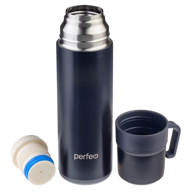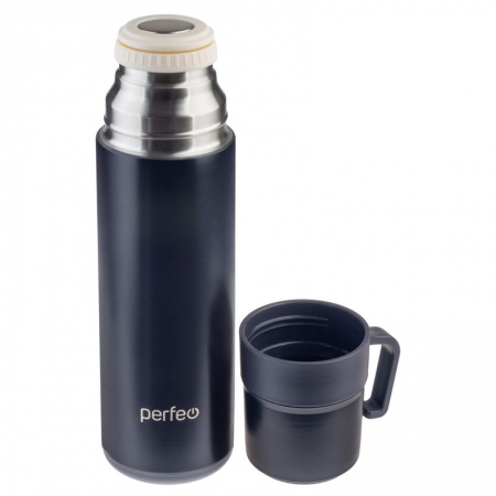 Термос для напитков с пробкой-кнопкой, кружкой, 0,6 л., черный, Perfeo (PF_D0204)