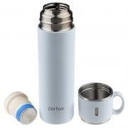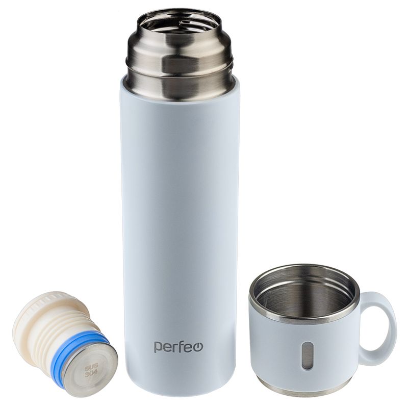 Термос для напитков с пробкой-кнопкой, крышкой-кружкой, 0,5 л., белый, Perfeo (PF_D0213)