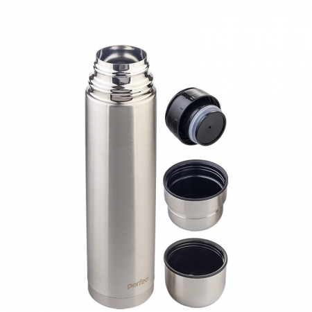 Термос для напитков с пробкой-кнопкой, сумкой, 1 л., нерж. сталь, Perfeo (PF_E1366)