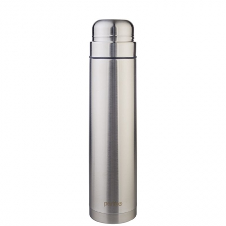 Классический термос-пуля объемом - 1,0 литр. Выполнен в эргономичном и ударопрочном корпусе из высококачественной нержавеющей стали. Для Вашей безопасности, внутренние стенки колбы изготовлены из пищевой высоколегированной нержавеющей стали SUS 304. Двойные стенки