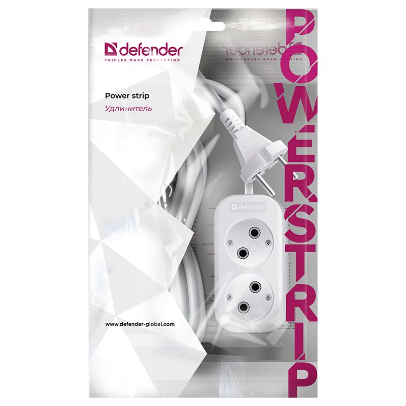 Главная / Электропитание / Сетевые фильтры и удлинители / Удлинитель сетевой Defender B220, 5 м, 2 розетки без заземления, 2200 Вт, белый (99272)