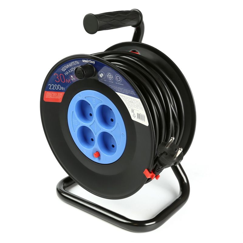 Удлинитель на катушке Smartbuy - спасение в ситуациях, когда стандартной длины шнура питания становится недостаточно. Он идеально подойдет для подключения ремонтного, строительного и другого оборудования. Модель оснащена 4 розетками без заземления и имеет автоматический предохранитель, обеспечивающий защиту устройства от перегрузок и замыканий. Медный провод обладает большим запасом надежности и меньшей потерей мощности при нагреве. Суммарная мощность подключаемой нагрузки - 2.2 кВт. Катушка держатель позволяет быстро и аккуратно смотать провод после использования. Длина шнура - 30 метров.