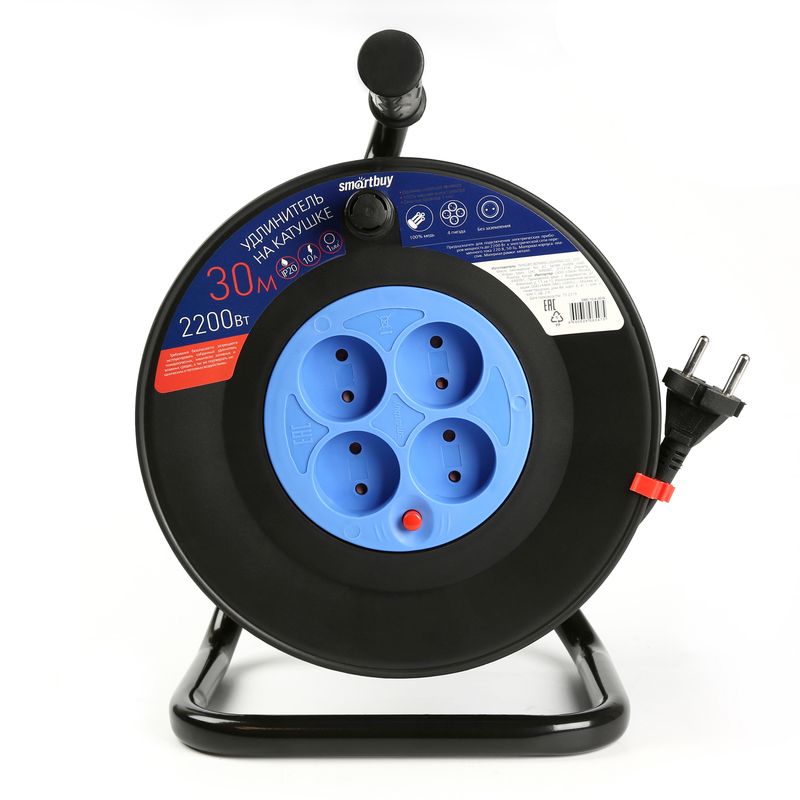 Удлинитель сетевой на катушке Smartbuy SBE-10-4-30-N, 220В 10A, 30 м, 4 розетки, без заземл., IP20