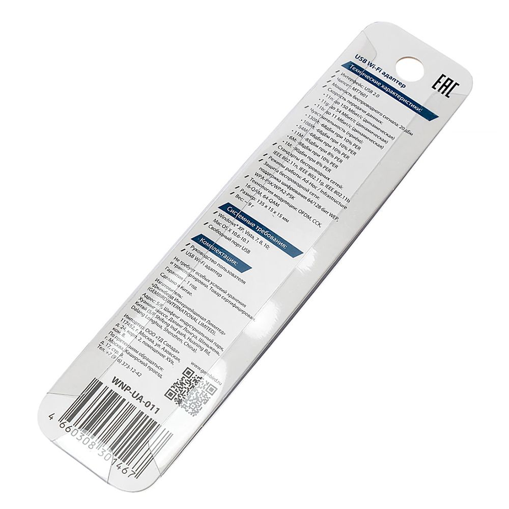 Gembird WNP-UA-011 - компактный WiFi-адаптер с внешней антенной. Обеспечивает подключение к сети WiFi на частоте 2.4 ГГц со скоростью передачи данных до 150 Мбит/с.