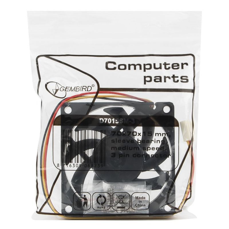 Вентилятор 70 x 70 x 15, 3 pin, 12V, втулка, кабель 25 см, Gembird (D7015SM-3)