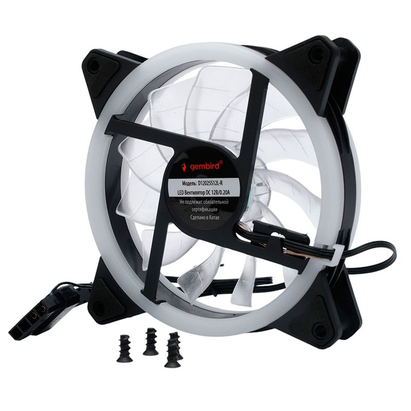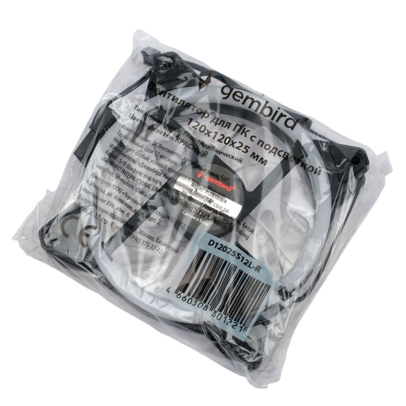 Вентилятор с подсветкой 120 x 120 x 25, 3 pin+Molex, красный, кабель 35 см, Gembird (D12025S12L-R)