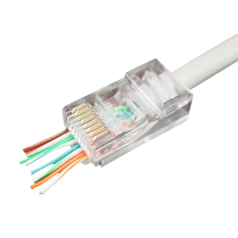 Производитель: Cablexpert Наименование: Коннектор RJ45 со сквозным отверстием Тип разъема: RJ-45 8p8c Категория: 5e Для проводников толщиной до 24 AWG (0.51 мм) Тип витой пары: одножильная или многожильная UTP Контакты: Позолоченные 6 мкм. Количество в упаковке: 100 шт