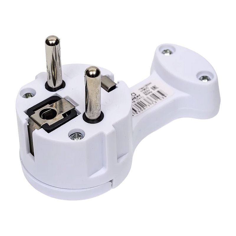Вилка угловая плоская с кольцом с заземлением 16А 250В, белая, Ecola (AEPL1WEAY)