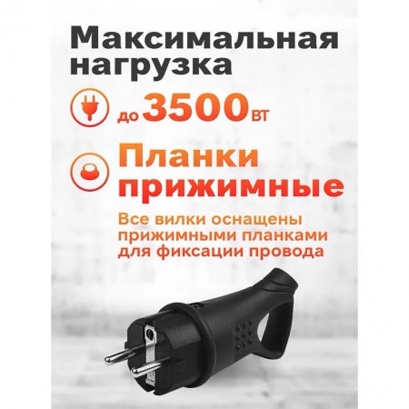 термостойком негорючем пластике. Вилка оснащена прижимной планкой для