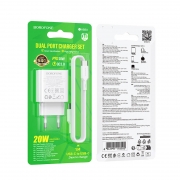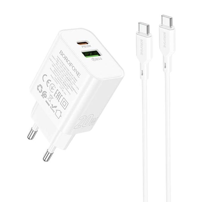Зарядное устройство Borofone BA88A, QC3.0/PD 20W USB A+C + кабель Type C, белое