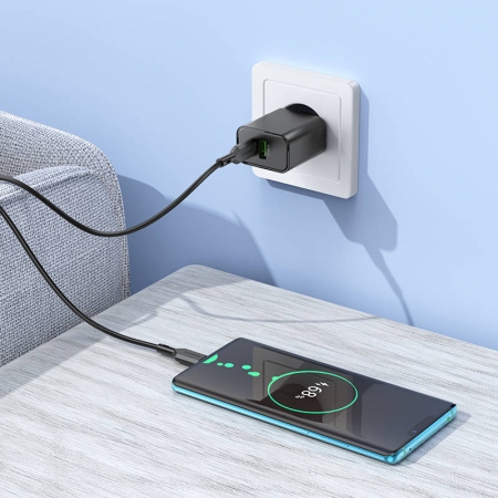 Borofone BA88A Navy - сетевое зарядное устройство с поддержкой стандартов быстрой зарядки PD, QC3.0/2.0, FCP, AFC. Адаптер обладает мощностью 20 Вт и оснащен двумя портами: USB-A и USB-С. Многоуровневая защита от короткого замыкания, перенапряжения, скачков напряжения, перегрева и перезаряда помогает обезопасить подключенные устройства от поломки. Borofone BA88A Navy выполнен в корпусе из термостойкого и ударопрочного пластика. В комплект входит кабель Type C длиной 1 метр.