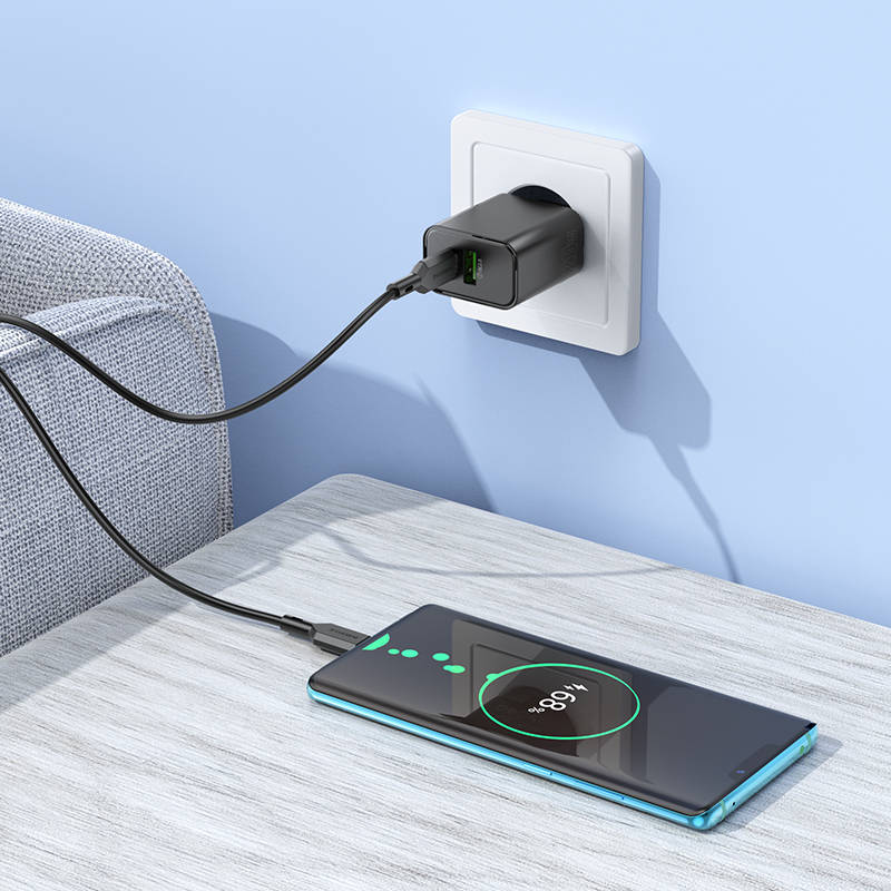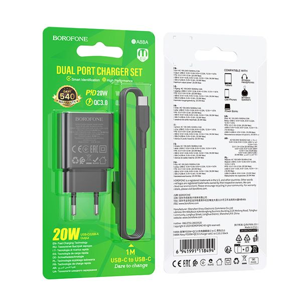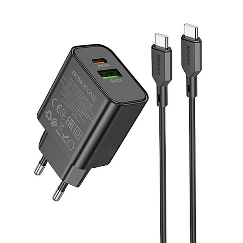 Зарядное устройство Borofone BA88A, QC3.0/PD 20W USB A+C + кабель Type C, черное