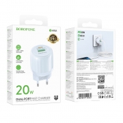 Зарядное устройство Borofone BA93A, QC3.0/PD 20W USB A+C, синее