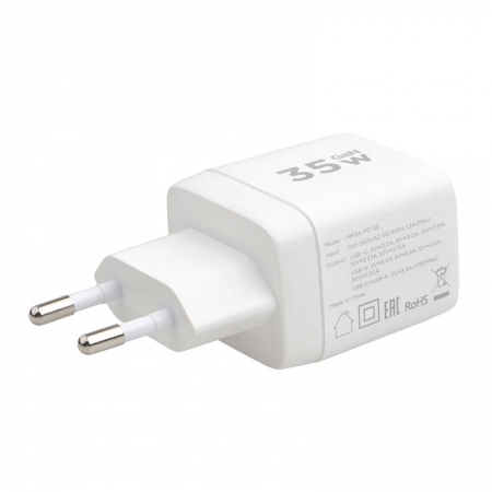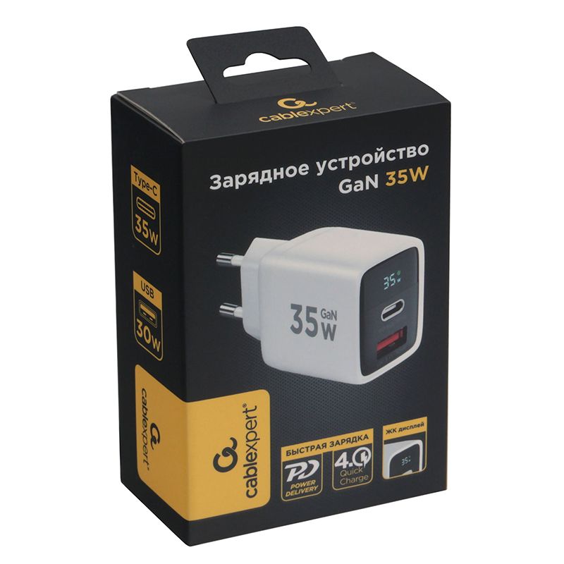 Cablexpert MP3A-PC-52 - новый тип зарядного устройства (GaN) с применением нитрида галлия для повышения энергоэффективности и снижения тепловыделения. Поддерживает стандарты быстрой зарядки: QC 2.0/3.0/4.0, PD 2.0/3.0, SCP, FCP, AFC. Максимальная выходная мощность: 35 Вт. Зарядное устройство оснащено портами USB A, USB C и цветным дисплеем, отображающий текущий режим зарядки. В нем есть защита от перенапряжения, перегрузки, перегрева и короткого замыкания. Корпус выполнен из термостойкого и ударопрочного пластика.