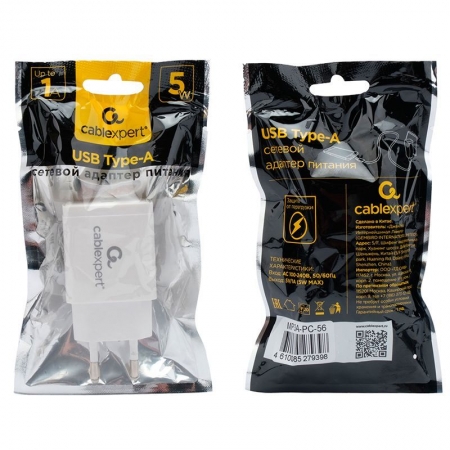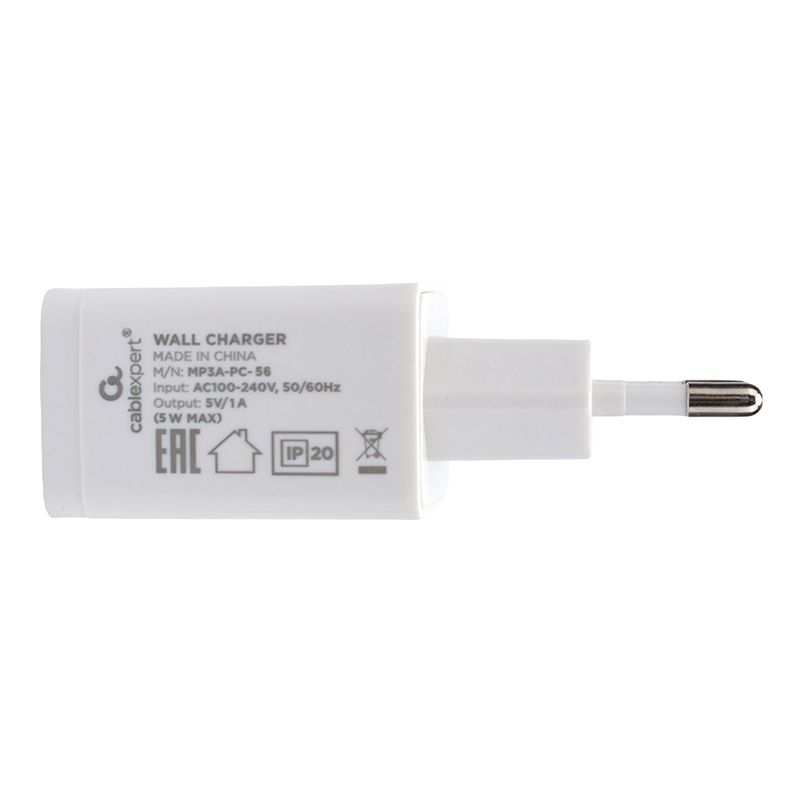 Зарядное устройство Cablexpert MP3A-PC-56 100/220V->5V, 1A USB, белое