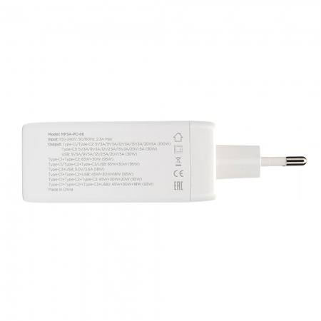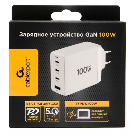Cablexpert MP3A-PC-66 - новый тип зарядного устройства (GaN) с применением нитрида галлия для повышения энергоэффективности и снижения тепловыделения. Поддерживаемые стандарты быстрой зарядки: QC 2.0/3.0/4.0/5.0, PD 2.0/3.0, SCP, FCP, AFC. Максимальная выходная мощность: 100 Вт. Модель оснащена тремя портами USB C и портом USB A. Имеет защиту от перенапряжения, перегрузки, перегрева и короткого замыкания. Корпус зарядного устройства изготовлен из термостойкого и ударопрочного пластика.