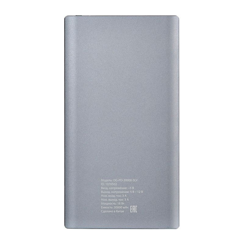 Зарядное устройство Digma DG-PD-30000-SLV, 30000 мА/ч, QC3.0/PD, 3A 2xUSB A + USB C, металл, серебр.