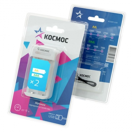 Зарядное устройство Космос KOC801USB, 1-2 AA/AAA, питание от USB