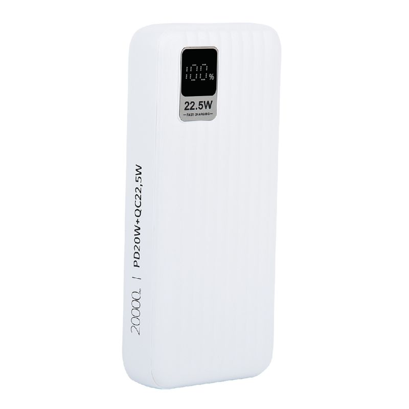 Производитель: Perfeo Наименование: Портативное зарядное устройство Емкость: 20000 мАч Тип аккумуляторов: Li-pol Входное напряжение: 5 - 12В Выходное напряжение: 4.5 - 12В Максимальный выходной ток: 5A Максимальная выходная мощность: 22.5 Вт Поддержка быстрой зарядки: QC 3.0/2.0, PD 22.5W Входные порты: USB C Выходные порты: 2 x USB A, 1 x USB C Индикация: Цифровой дисплей Цвет: Белый Материал корпуса: ABS-пластик Размеры: 150 х 68 х 28 мм Вес: 410 г